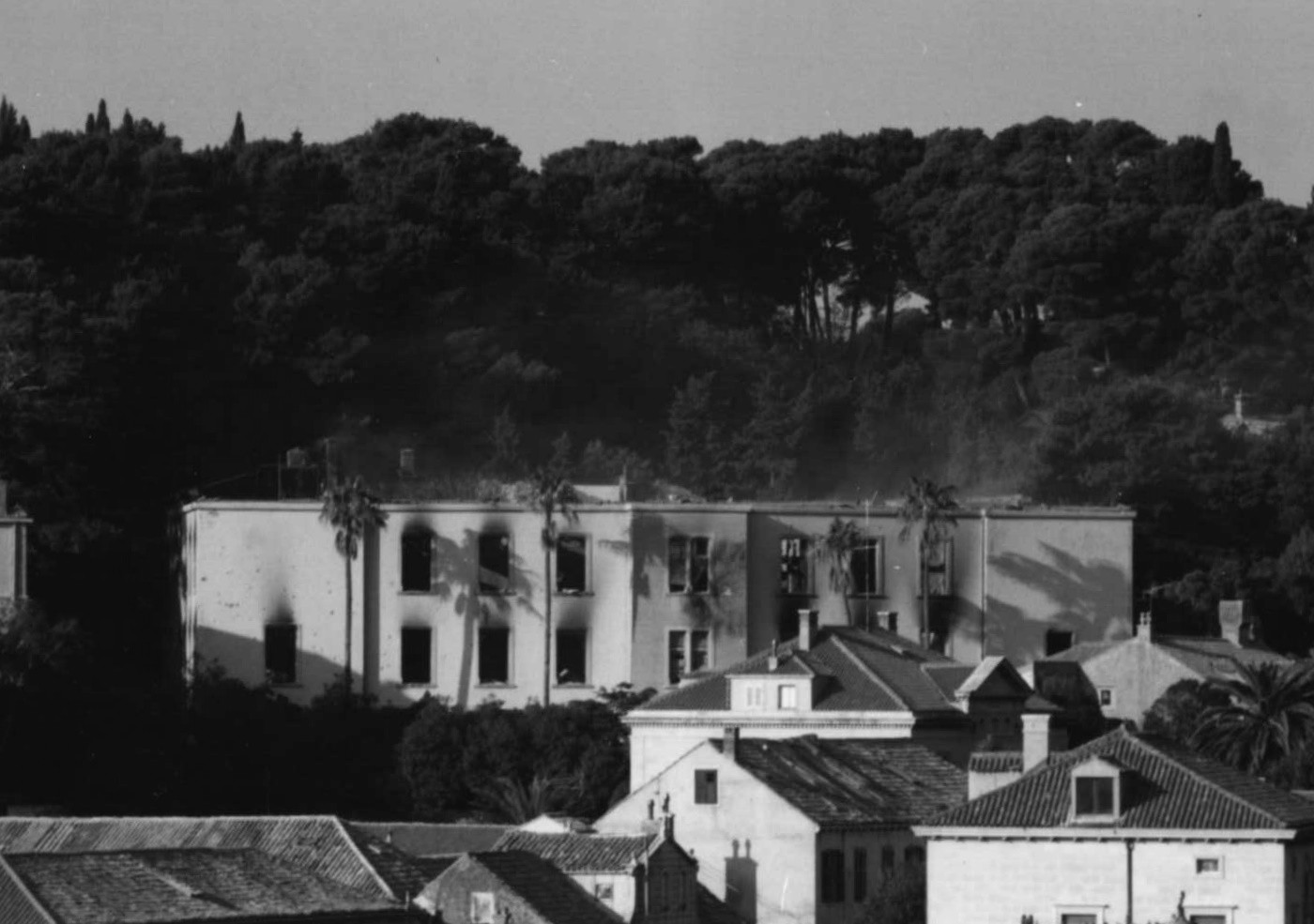 However, not event wars did stop the activity of the Centre. Brutal attacks on Dubrovnik culminated on 6th of December 1991, when the building housing the IUC was one of the targets. After several direct hits by incendiary shells, the whole building burned down, including the library with 30 000 volumes. Only the outside walls and the staircase survived. Luckily, most of the archive, the institution's memory, was saved from flames.